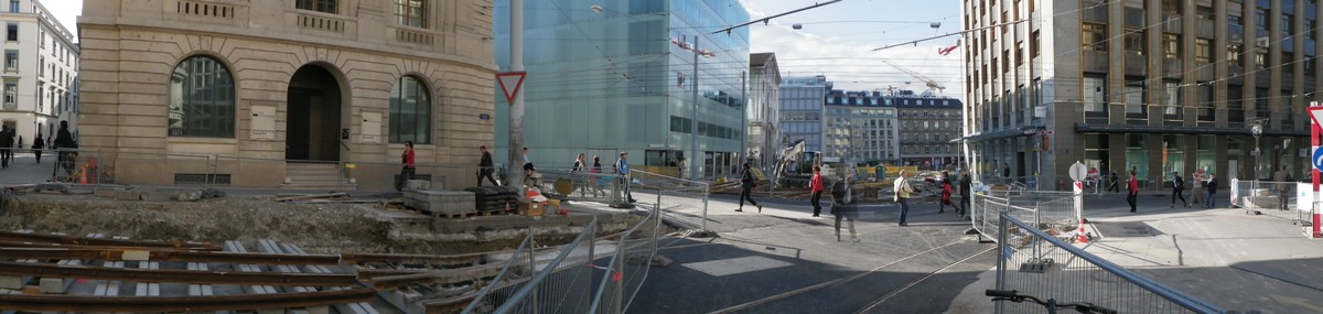 Travaux rue de la Corraterie, Genève 2010De bien beaux travaux provoqués par le cheminement du tram via le pont de l'Ile.C'est le prix à payer pour une ville qui a démantelé son réseau de tram dans les années '60.