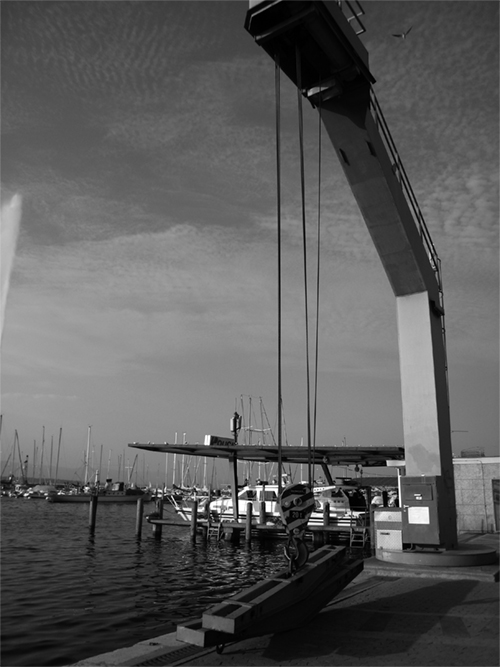 Le fouilli de mâts, coques et câblages divers qu'abrite la rade permet de jouer sur le graphisme.