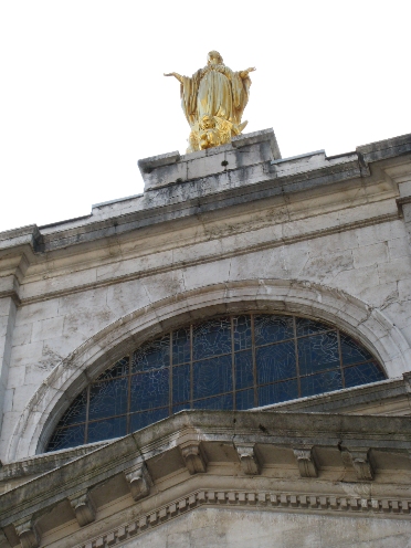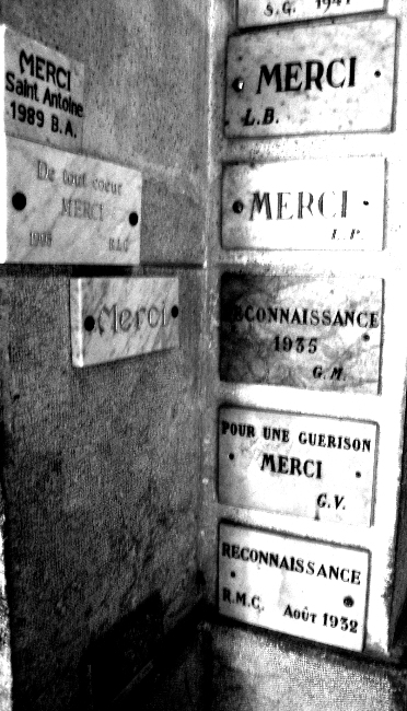 Bois sculpté sur une parois à l'entrée de l'église Notre Dame de Liesse.