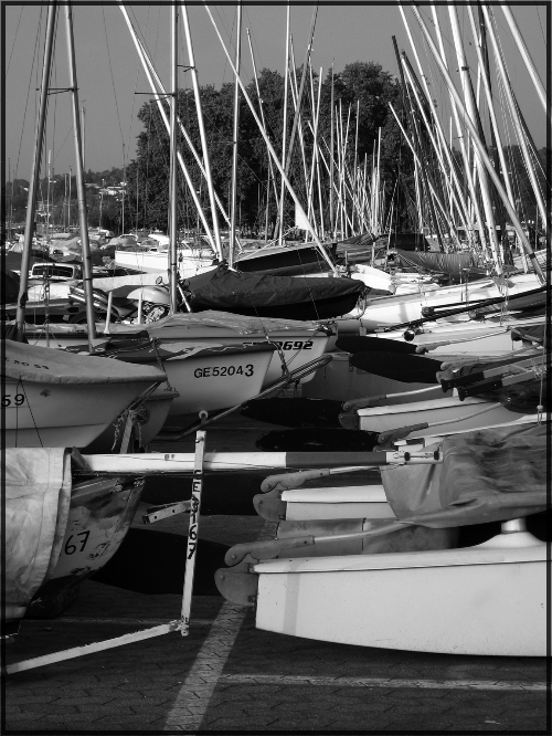 Le fouilli de mâts, coques et câblages divers qu'abrite la rade permet de jouer sur le graphisme.