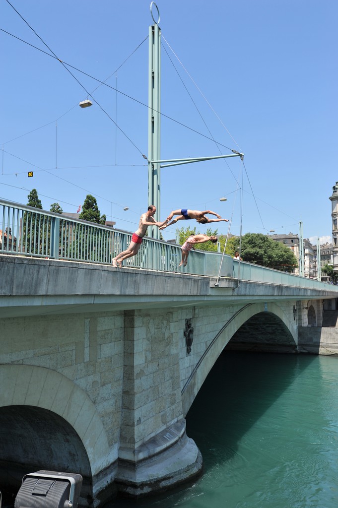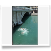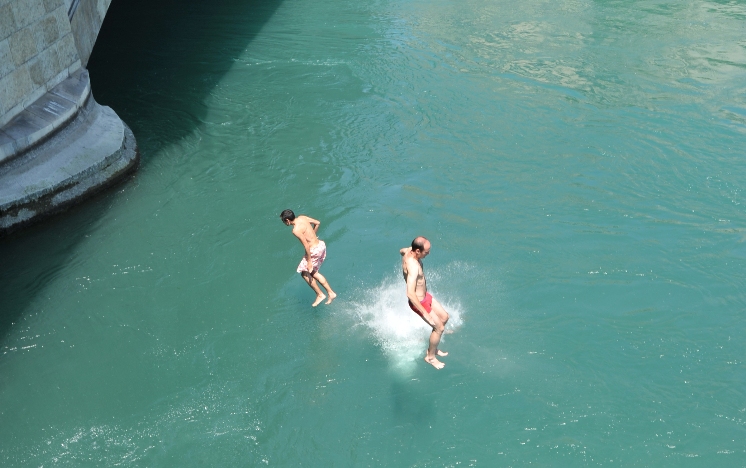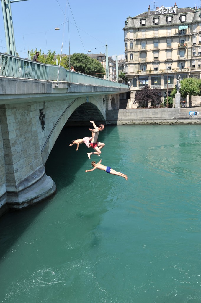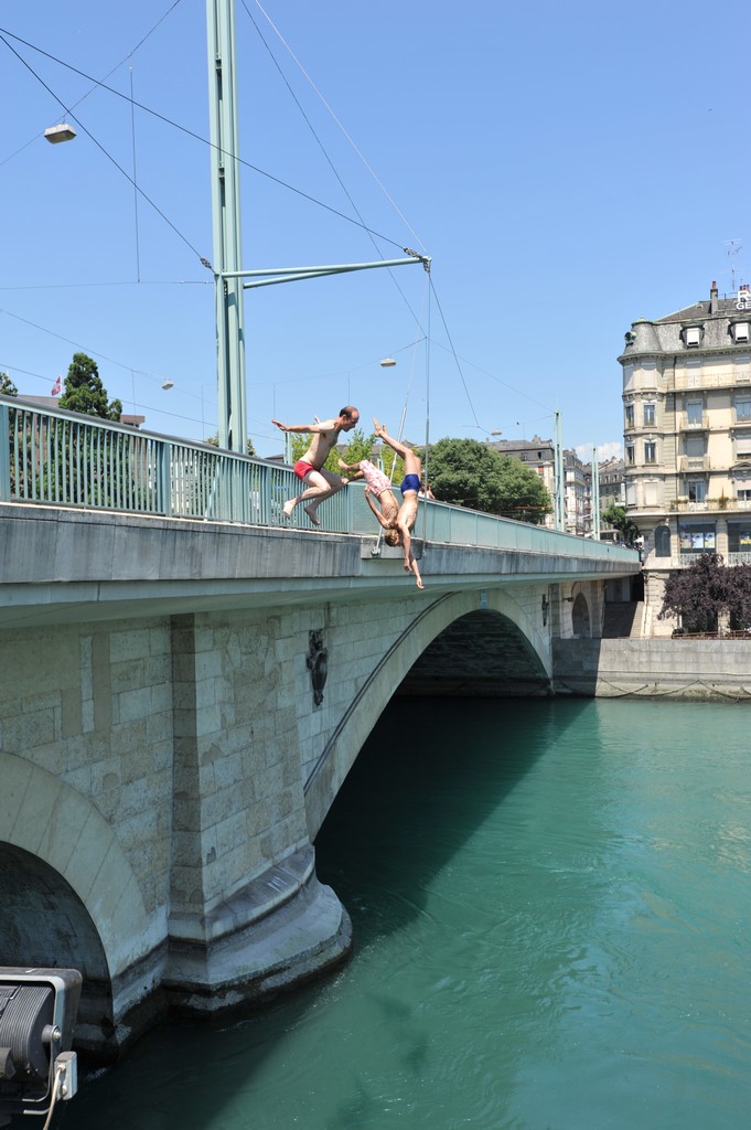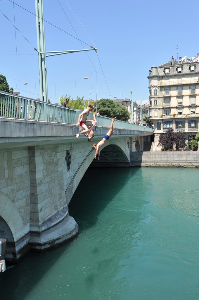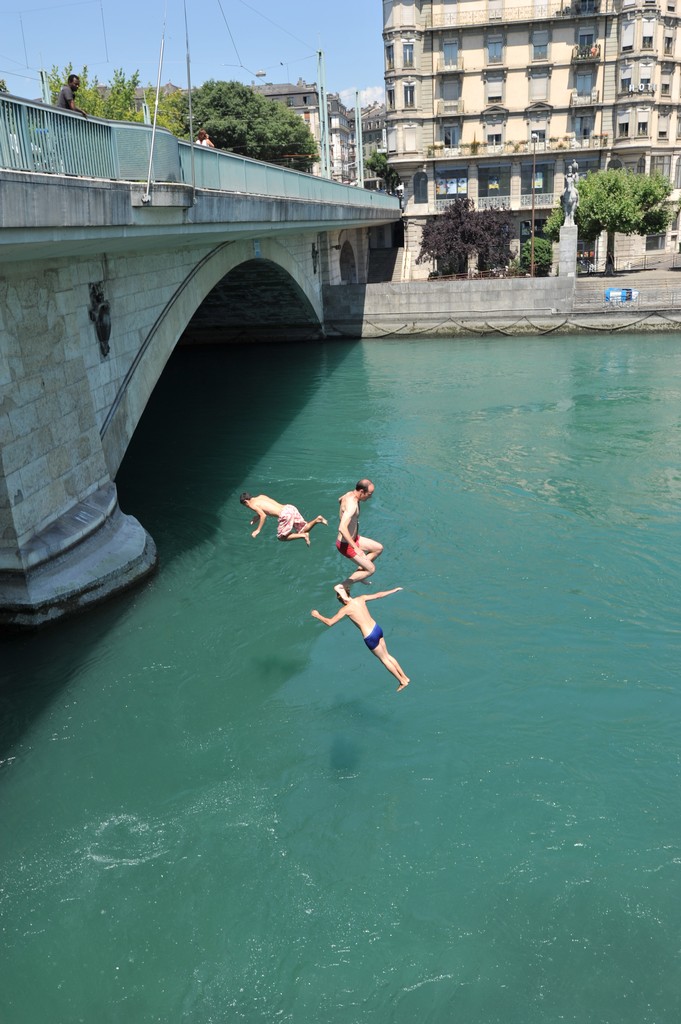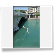 pont de la Coulou', juin 2011Nikon D700 + Nikkor 16-35/f.4 VR (200 iso, mode rafale)Lieu de fraîcheur quand la ville étouffe, les bords du fleuve ont de tout temps été un formidable terrain de jeux.Jésus se serait-il entraîné sur le Rhône ?