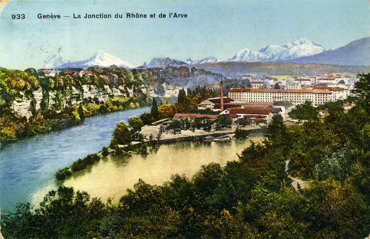 L'origine de son nom se devine en regardant la carte ci-dessus: le Rhône et l'Arve se rejoignent.