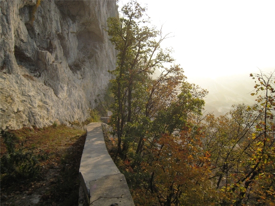 Cette partie de la voie à flanc de falaise a demandé d'importants travaux.