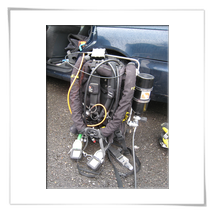 Arrivée sur site. La "Dive Mobil" et son maître, Dark Mike