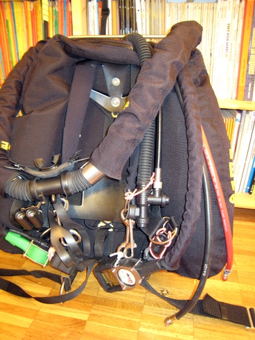 En plongée profonde, le gonflage de l'étanche nécessite généralement une source de gaz spécifique car utiliser le diluant riche en hélium n'est pas idéal, sauf pulsions masochistes ! Un petit bloc d'air ou d'argon monté sur le côté rempli habituellement ce rôle.