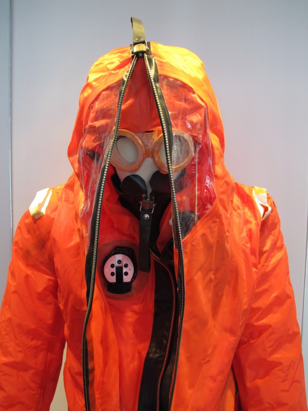 combinaison de sauvetage française ARRIS - parc de la Villette (Paris) Pendant français du matériel russe, cette combinaison est destinée à l'évacuation d'un sous-marinier par le sas individuel ou le tube lance-torpille jusqu'à -120m. Vitesse de remontée: 2,7 m/s