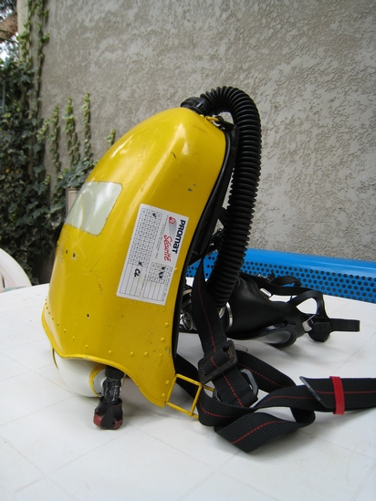 Voici un petit recycleur de fabrication française (Fenzy a fabriqué également les DC55, Oxygers, etc.) destiné aux secours en atmosphère polluée. La machine est compacte et légère (9kg). Elle est donnée par le constructeur pour 1h30 d'autonomie quelque soit l'effort.