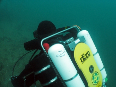 J'ai eu une étrange sensation de perte de repère pendant cette plongée. Mauvaise visibilité (2 mètres maxi), forte pente, profondeur et un soucis avec le rEvo (fuite sur le capot). Du corps ou de l'esprit, on ne sait jamais lequel faiblira le premier.