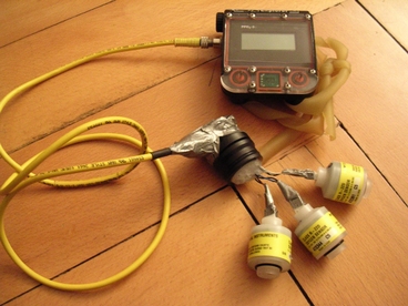 Mon bricolage pour brancher les cellules sur le sac du Dolphin est assez immonde, un mélange de colle et de scotch. Que les bons bricoleurs me pardonnent ! L'écran n'indique pas la Ppo2 mais 12 secondes. A 30 s, il s'éteindra. Le calibrage se fait à l'aide de deux boutons sur le devant. Le bracelet d'origine étant totalement inadapté à l'épaisseur de ma combinaison sèche, j'ai mis à la place du tuyau silicone.