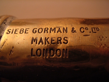 Lampe étanche Siebe Gorman (Angleterre).Le métal a été poncé puisqu'une couche d'étain était appliquée. Acheté (une fortune !) à Paris aux puces de St-Ouen.Un joli site pour qui aime en savoir plus sur le matériel ancien: www.pieds-lourds.com