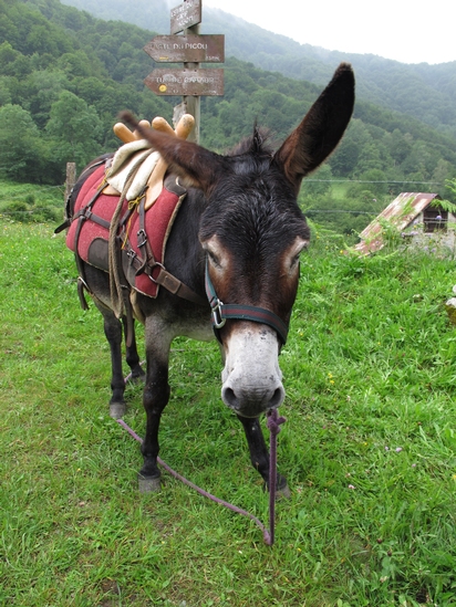 Le départ se fera dans la boue, ayant plu pendant la nuit. Arthur, très à l'aise, marchera d'un pas tranquille tout au long de nos étapes de 5 heures. Souvent, il nous "testera" en se laissant aller à brouter l'herbe le long du chemin. Bien sûr, tout le monde se battra pour tenir sa longe. Animal sensible et intelligent, le gentil Arthur fut dénitivement la vedette de cette semaine.