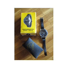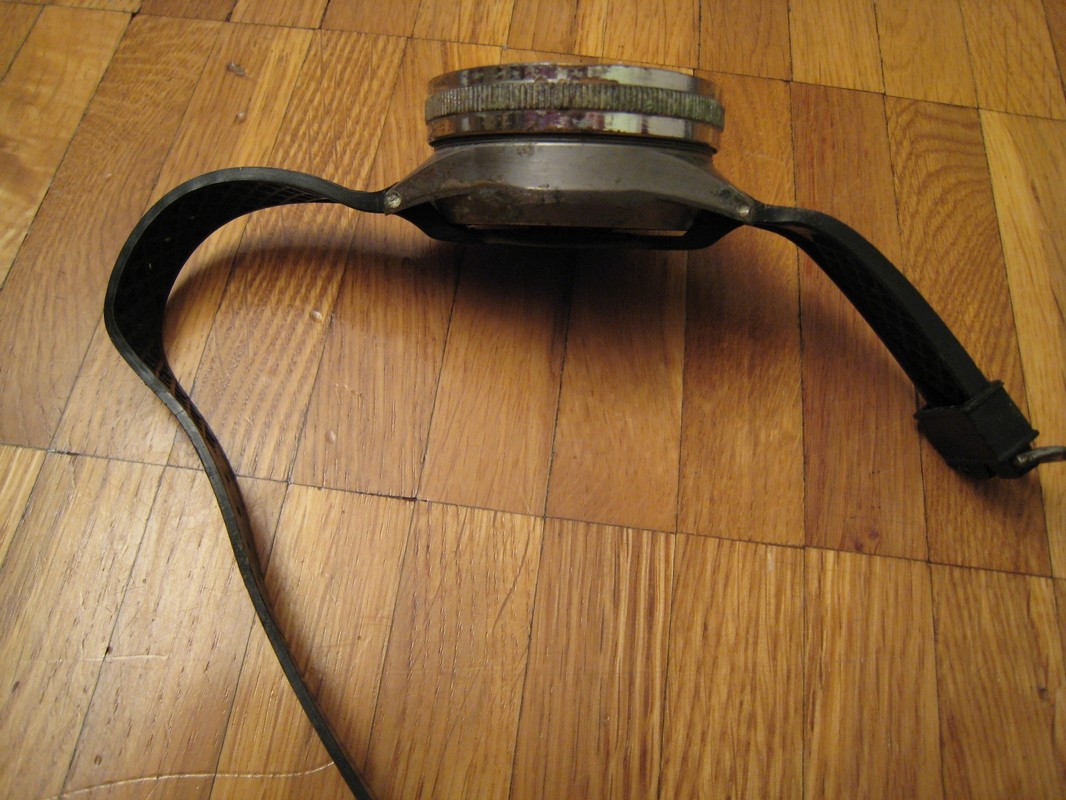 Le profondimètre n'est plus très neuf mais possède le bracelet d'origine (légèrement coupé à une extrémité). Il n'y a pas d'aiguille traînante. Le fond se dévisse pour permettre l'équilibrage des pressions. Pour en voir plus: www.atra.name