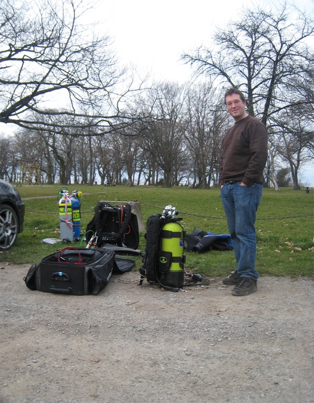 Après avoir affronté la pente (pff !) et les 200 mètres de gazon, c'est enfin l'arrivée à la bagnole. S'ensuit (une fois changé) une grande discussion sur le système QC6 de Swagelok et autres accessoires étranges. Un langage de secte ! Nous échappons à la pluie par miracle. Le retour se fait aux rythmes des irrégularités de la route que les suspensions "sport" de la Dive Mobile prennent malin plaisir à nous faire partager. Et si on l'immergeait plutôt à St-